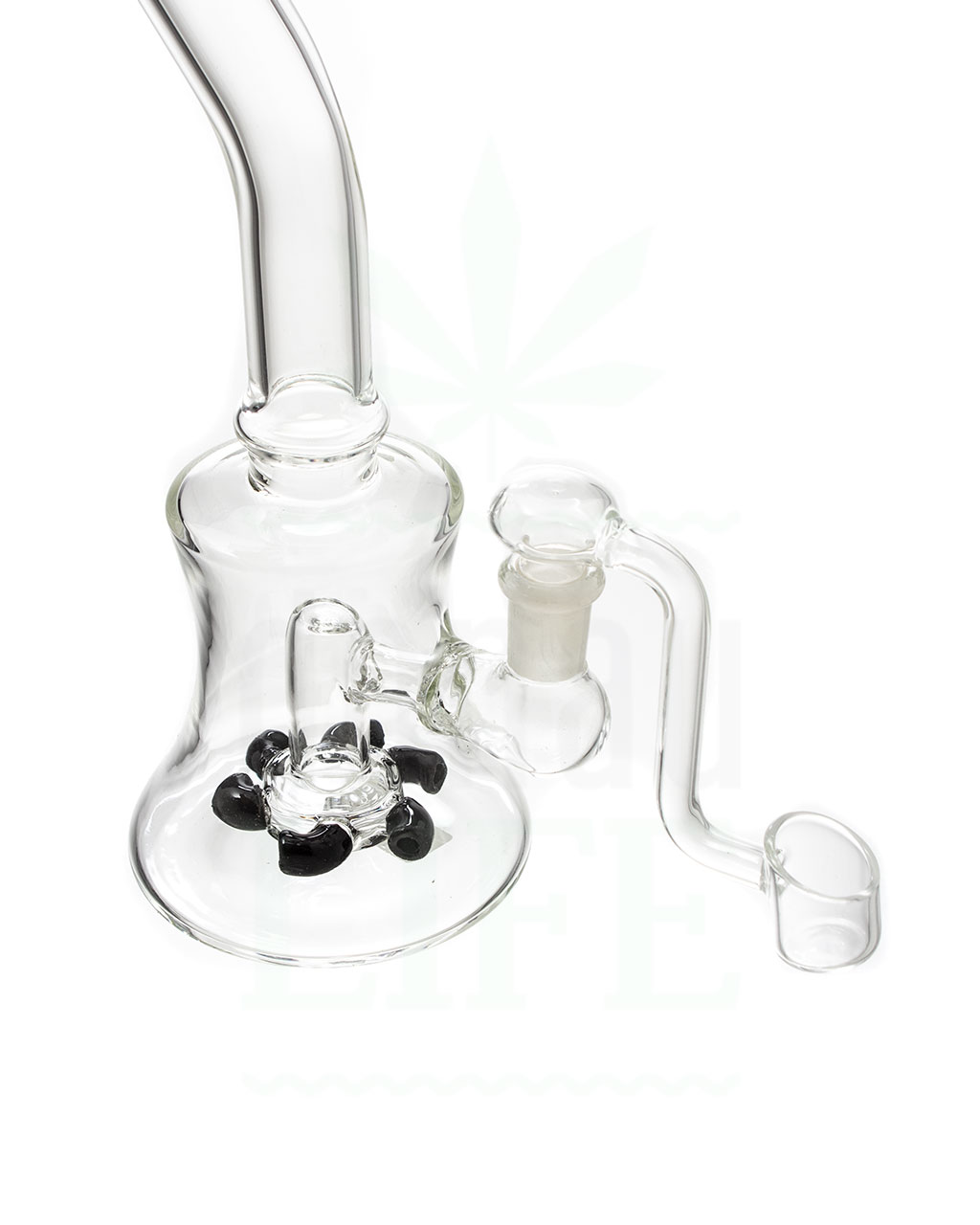 Klein aber Oho! Man darf die “Turbine” keines Falls unterschätzen. Trotz ihrer handlichen Größe von nur 25 cm und einen Durchmesser von ca 2,5-8,8 cm, kann sie selbst geübte Smoker aus den Socken haun. Diese spezielle Percolatordabrig mit Dampfturbinenfunktion verfügt über einen Banger, der den Abstand zwischen der erhitzten Ölpfanne und der Wasserpfeife vergrößert. Dadurch wird es einfacher, den Brenner oder Dabbing-Werkzeuge zu handhaben. Durch diese Anpassung wird der Glaskörper effektiv vor übermäßiger Hitze geschützt, und es wird eine verbesserte Sicht auf den richtigen Ansetzpunkt für den Tupfer ermöglicht.