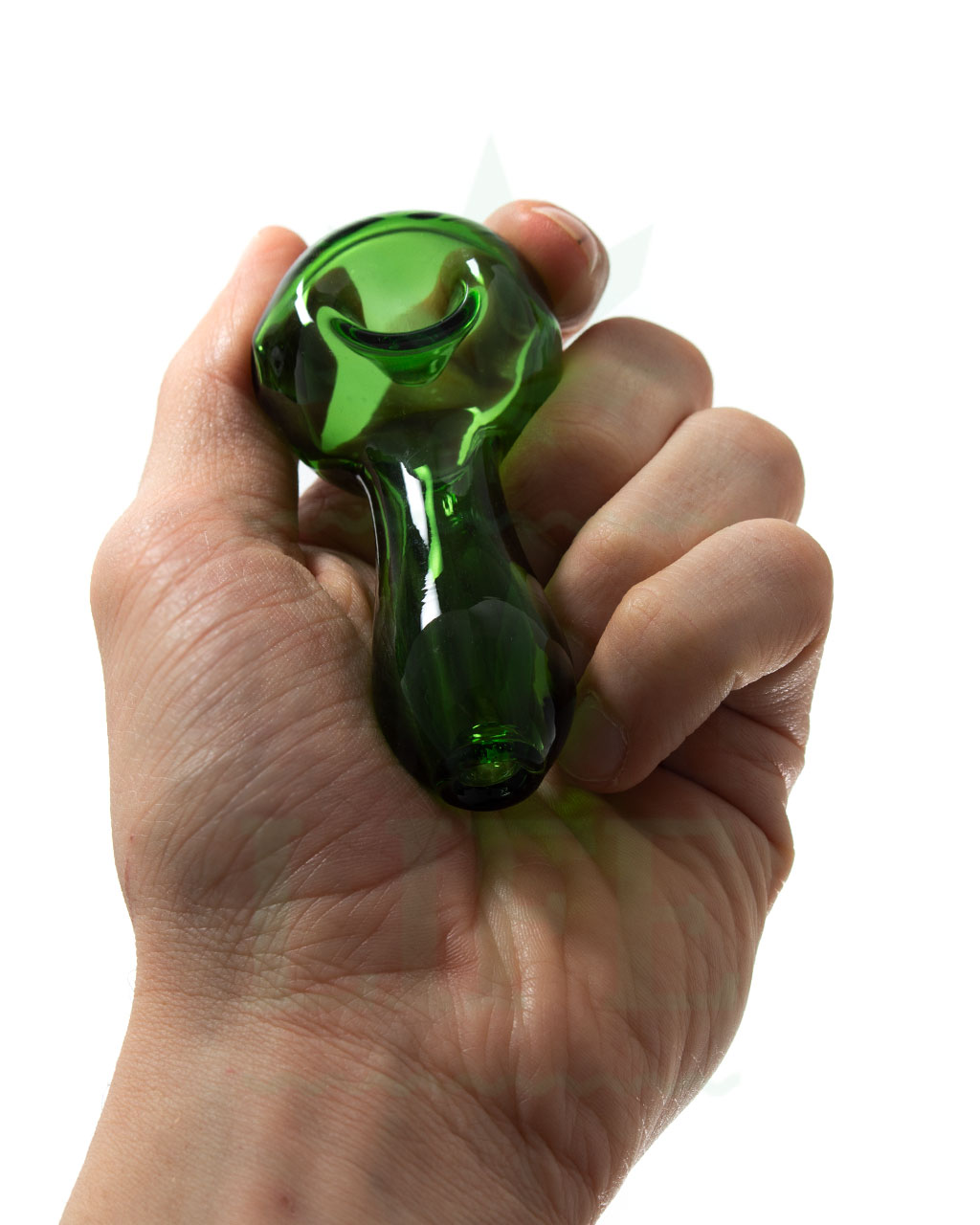 Handpfeife aus hochwertigem grünem Glas für den puren Rauchgenuss oder Kräutermischungen. Mit Kickloch.
