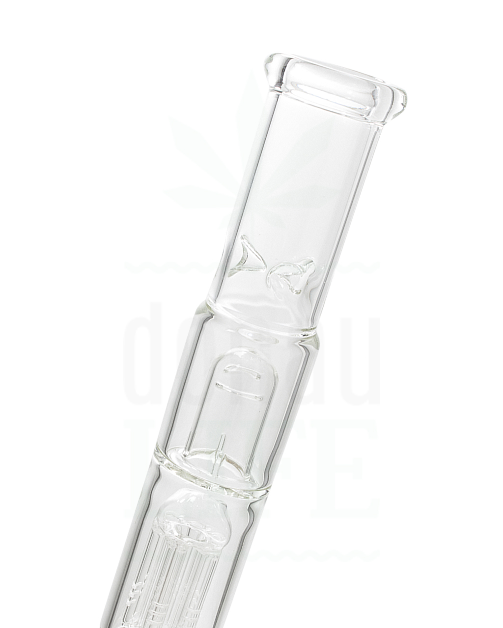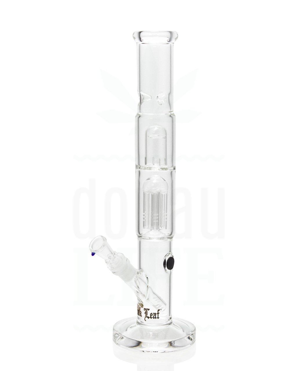 Eine wunderschöne Kreation von ‘Black Leaf’. Inklusive ist ein Diffusorchillum mit einem Kräuterkopf, um ein maximale Raucherlebnis zu erzielen. Der Rauch zieht durch das Röhrchen in die Beaker, wo Asche und Schadstoffe hängen bleiben. Daraufhin geht er durch den sechsarmigen Percolator, wo er zerlegt und aufgeteilt wird.