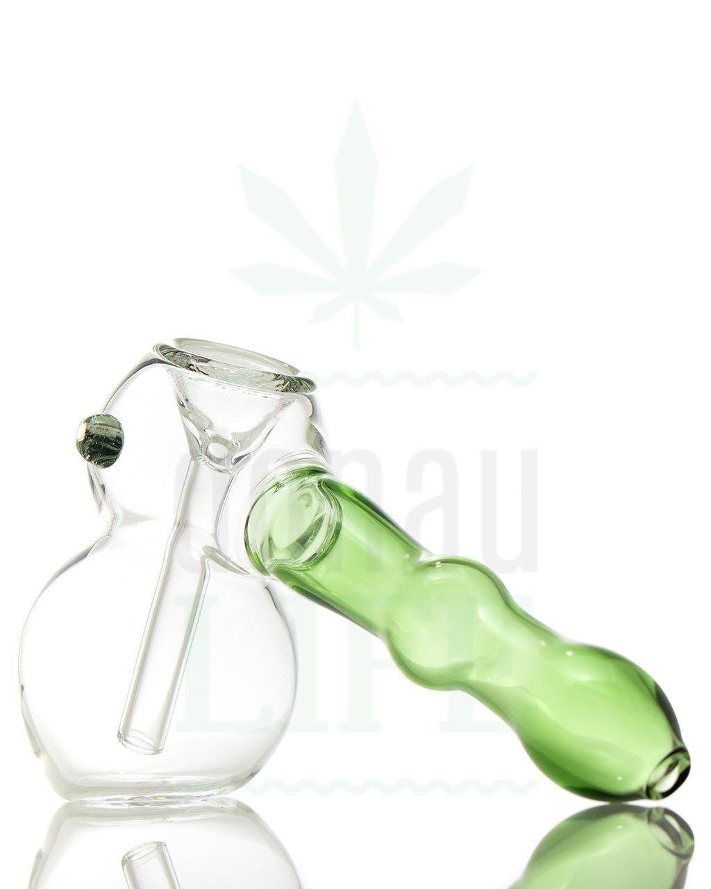 Dieser verschieden farbige Bubbler aus dem Hause Black Leaf liegt nicht nur gut in der Hand sondern sieht in seinen unterschiedlichen Farben auch noch gut aus. Durchläuft der Rauch erst den Bubbler wird er optimal gekühlt und verhilft zu sehr sanften Hits. Damit ist der ‘Little Star’ der optimale Wegbegleiter für den kleinen “Hunger” zwischendurch.