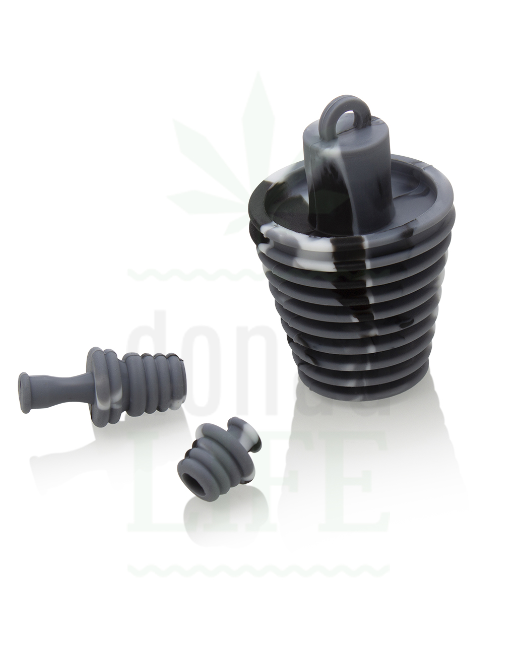 Dazu kommen ein Diffusorschlitzadapter, dessen Rohr ebenfalls aus schwarzem Glas ist, ein Kräuterköpfchen mit praktischem, schön breitem Griff und eine robuste Wandstärke von 5mm. In die Eiskammer passen viele rauchabkühlende Eiswürfel, das Mundstück ist angenehm abgerundet, es gibt ein Kickloch und der von innen bedruckte Pfeifenboden sorgt für einen weiteren WOW -Effekt.