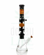 Diese formschöne BLAZE GLASS® Twisted Transistor besteht aus zwei Teilen. Dem Unterteil mit doppelt verstärktem Schliff und dem Rauchrohr mit einer Kühl-Spiralkammer, die im Kühlschrank vorgekühlt werden kann. Das Design dieser Coolbong enthält bunten Sektionen und ist ansonsten elegant schwarz gehalten. Nur die Wasserkammer ist klar und mit dem silbernen BLAZE GLASS® Logo verziert. Ein Doppel-Diffusor-Adapter ist ebenfalls dabei. Er besteht aus zwei herausnehmbaren Adaptoren. Der 1. Adapter hat einen 5-armigen Baumdiffusor und der 2. besteht aus einem 12-Schlitz-Diffusor. Dies sorgt für mächtig Verwirbelungen, kühlt den Rauch optimal ab und filtert den Rauch vor. Inklusive Schliffklemme.