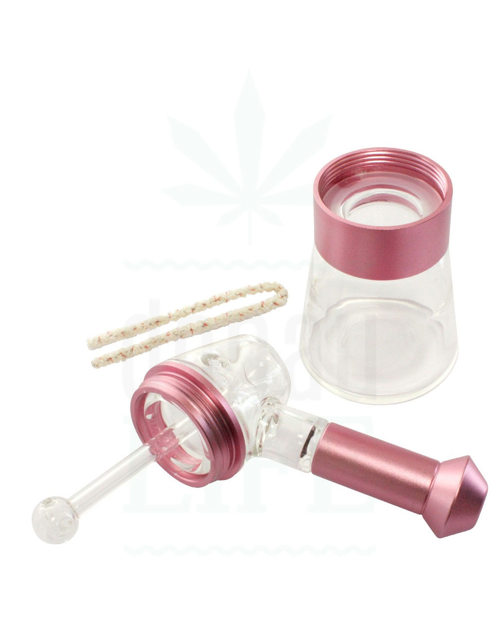 Diese robuste Pfeife für getrocknete Kräuter ist aus 3 mm dickem Borosilikatglas in medizinischer Qualität gefertigt.