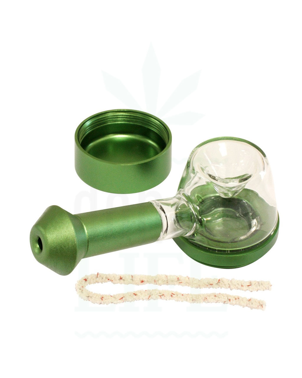 Die Unterseite der breiten und flachen Basis sorgt nicht nur dafür, dass die Spoon-Glaspfeife beim Befüllen stabil bleibt, sondern bietet auch einen bequemen, ergonomischen und sicheren Griff. Außerdem ist unter der Pfeife eine kleine geschraubte Basis in der Kräuter transportiert werden können.