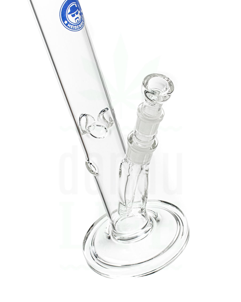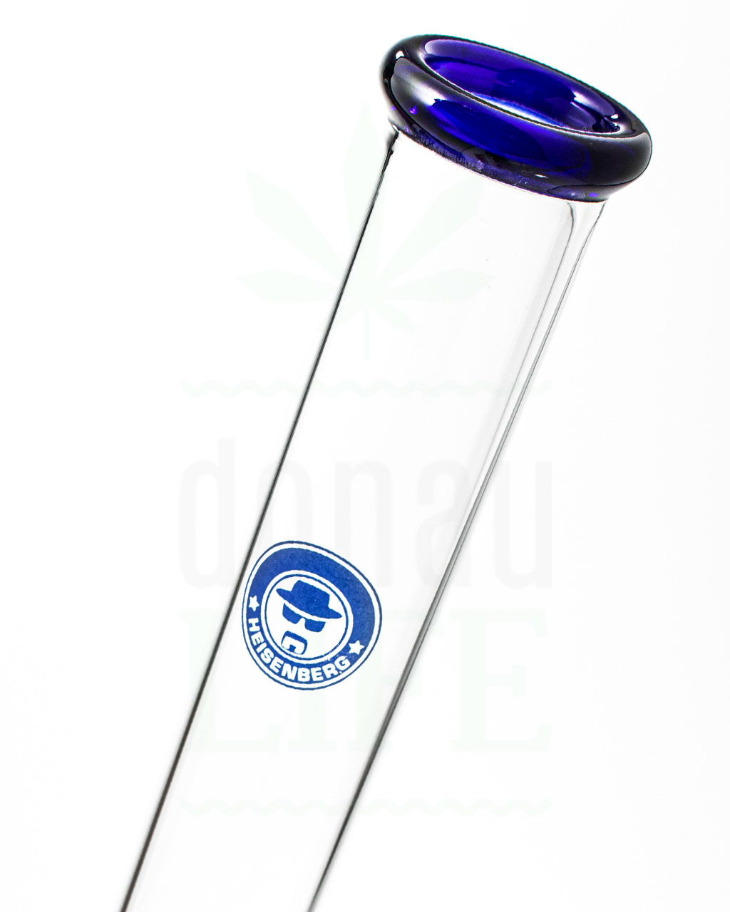 Ein schönes Stück Glasware in der gewohnten Heisenberg Qualität. ;) 36 cm hoch mit einem Durchmesser von 4 cm am Mundstück. Auf dem Bonghals ist das Heisenberg Logo verziert. Das Mundstück ist blau eingefärbt und hebt sich somit vom Rest der Bong ab. Der Rundfuß auf dem das gute Stück seht, sorgt für die notwendige Stabilität. Das Chillum ist ca. 12cm Lang und hat einen 18,8er Schliff. Kickloch und Eisfach sind vorhanden, somit steht smoothen, kalten Bonghits nichts mehr im Wege.