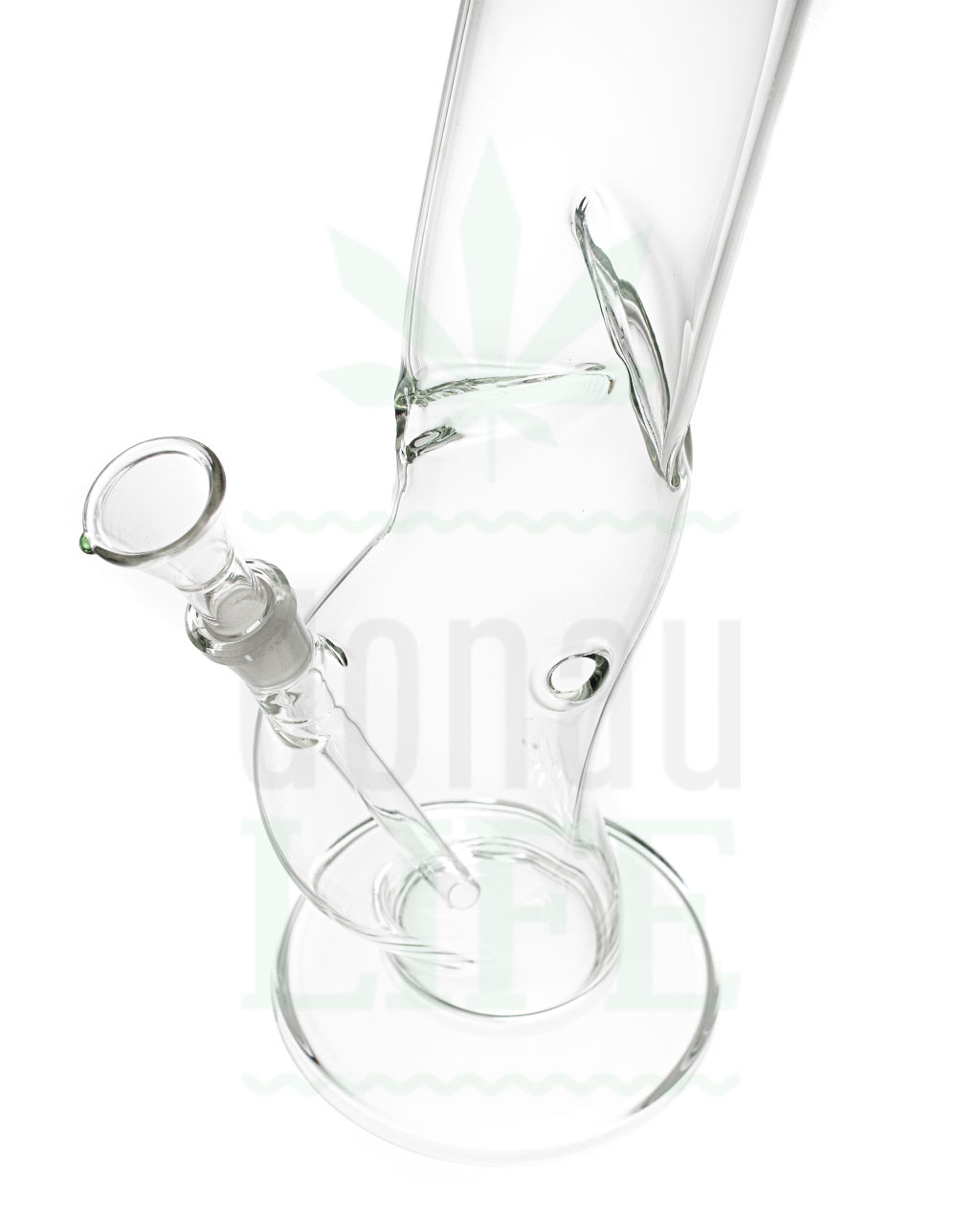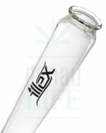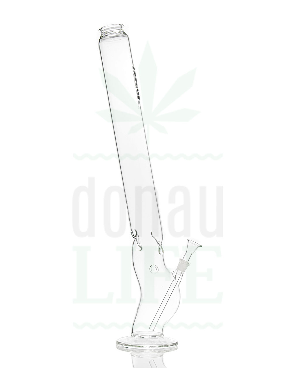 Die Illex Glasbong ‘Big Shot’ besitzt einen Rundfuß für Standfesten Gebrauch, einen schwarzen Illex Aufdruck und ein fettes 75cm Rohr. Mit dieser Größe ist die Bong unter den großen Modellen einzuordnen und nichts für Anfänger. Das Chillum steckt in einem 18,8 mm Schliff und hat den Kopf eingebaut. Ein Kickloch ist ebenso vorhanden.