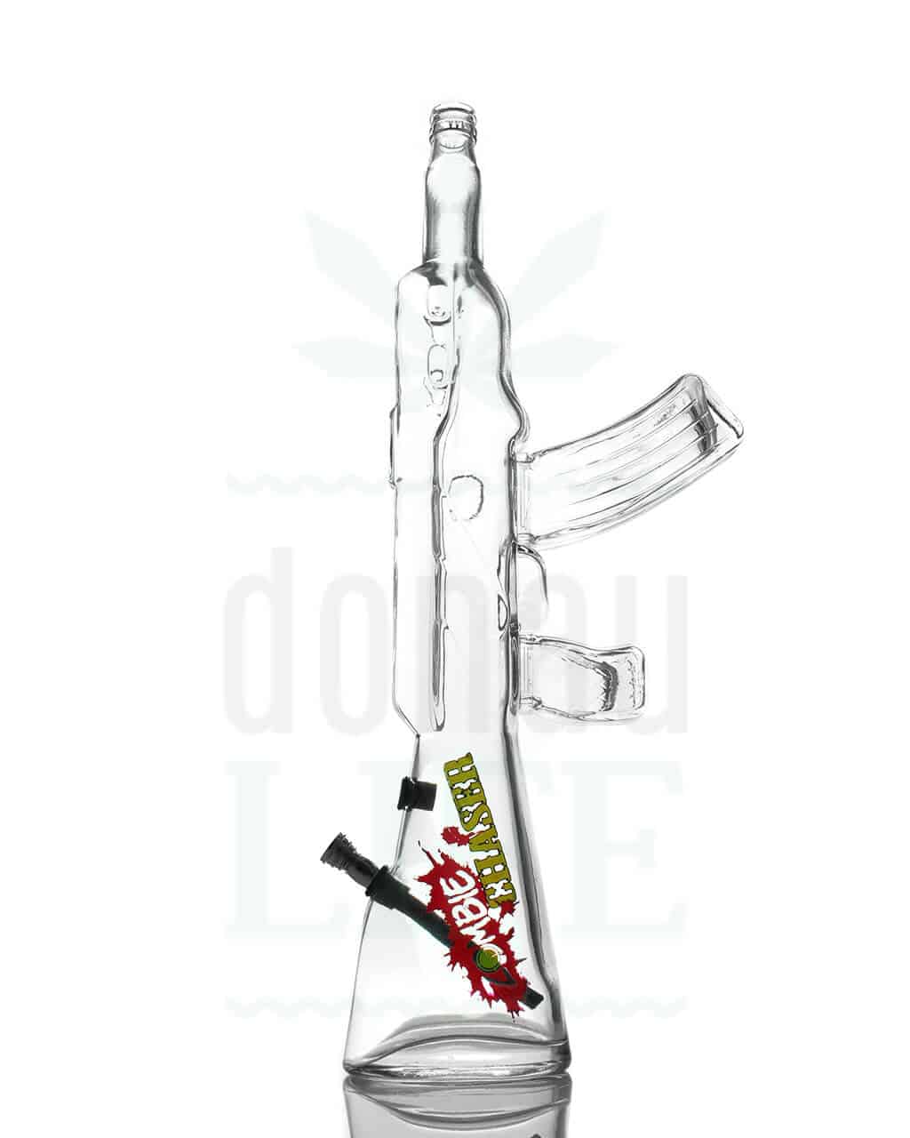 Diese “Zombie Chaser” Glasbong in Form eines Maschinengewehrs darf in keinem Zombie Survival Kit fehlen. Erst mit dieser Bong macht die postapokalyptische Welt Spaß und lässt sich garantiert ertragen.