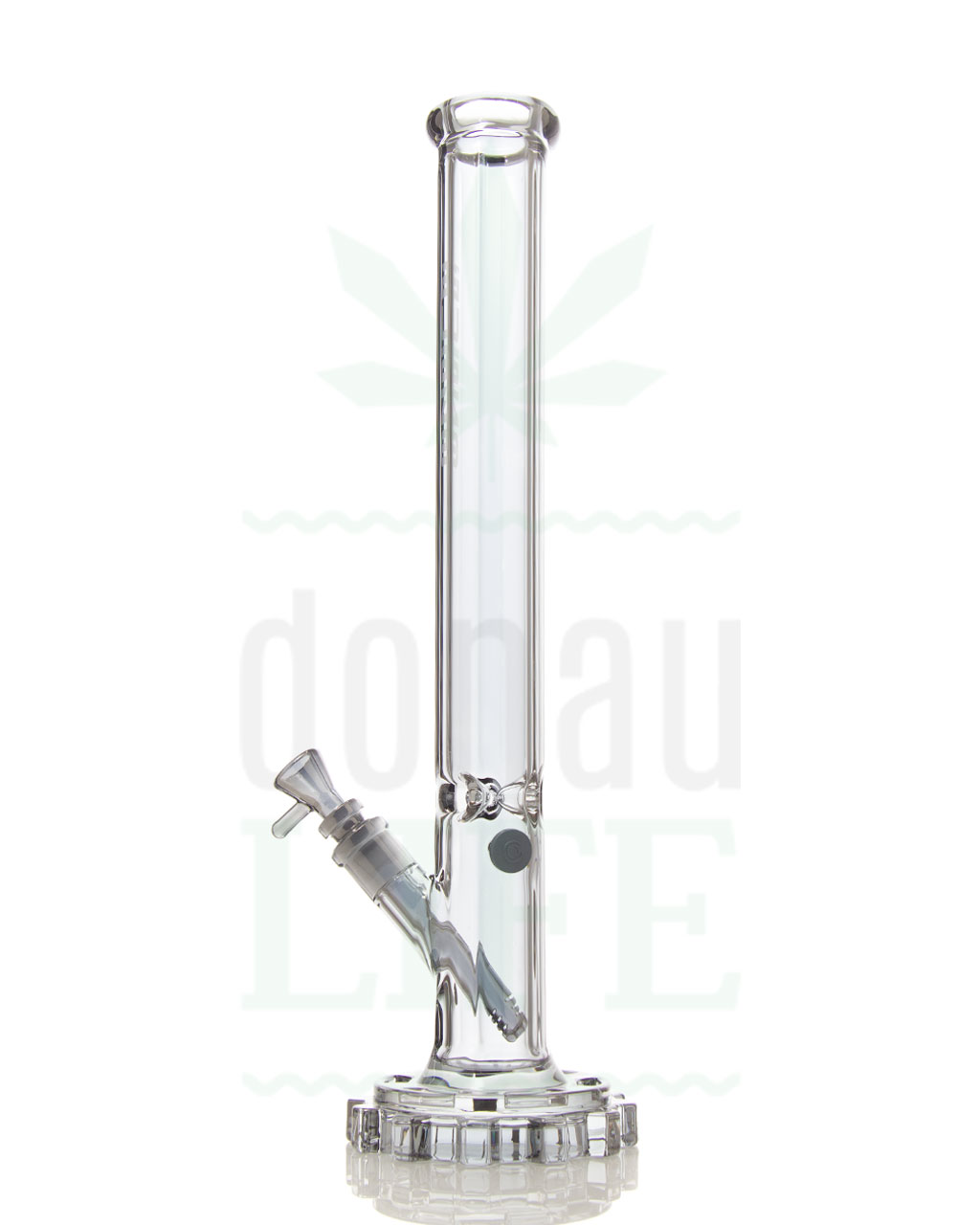 Ausgestattet ist die eindrucksvolle Zylinderbong mit einem Schlitzdiffusor-Adapter und Lift-off-Kräuterkopf, hat aber für alle Kicklochfans auch ein solches. Das Kickloch kann für die Lifter und für eine leichtere Reinigung mit dem beiliegendem Stopfen fest verschlossen werden. Da die Dornen der Icekammer sehr tief liegen, passen jede Menge Eiswürfel hinein – für unzählige coole, unkratzige Hits.