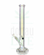 Dass die zylinderförmige Wasserpfeife wie ein Fels in der Brandung erscheint, liegt zusätzlich auch noch an der fetten Wandstärke von 7mm. Dadurch ist die Bong aus Borosilikatglas wirklich mehr als robust. Den besonderen, raffinierten Look erhält die ‘Gear’ durch das extravagante, perfekt zum Zahnradfuß passende, sechskantige Glasrohr. Dieses lässt das gefärbte und irisierende Glas besonders ausdrucksstark in Regenbogenfarben mit Metalliceffekt schimmern.