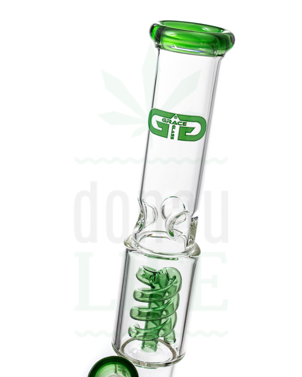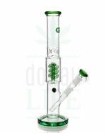 Die Spiral Boost von Grace Glass ist ein äußerst gelungenes Stück Glaskunst der OG Series. Die grünen Akzente auf dem hitzebeständigem Borosilikatglas geben dieser Bong ihren einzigartigen Look. Sie verfügt über einen Spiral Percolator der den Rauch nicht nur verwirbelt sondern auch filtert und abkühlt. Darüber hinaus verfügt sie über einen Splashguard une ein Eisfach für extrasmoothe Hits.