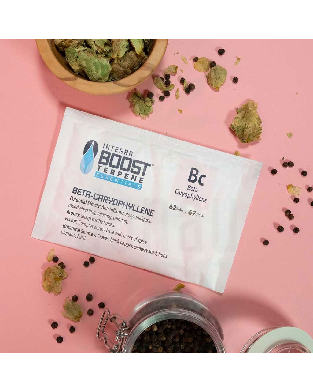 Im Gegensatz zu normalen, nicht aromatisierten Integra Boost®-Packungen verändert die Boost® Terpene Essentials-Linie die Aromen und den Geschmack Ihres Produkts. Diese Veränderungen sind normal und zu erwarten – sie bedeuten, dass Ihr Produkt die Terpene absorbiert und infundiert.