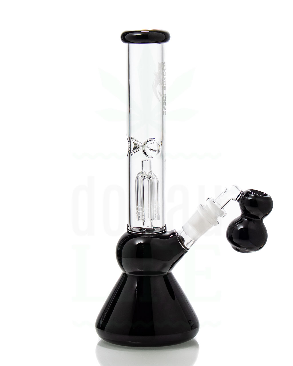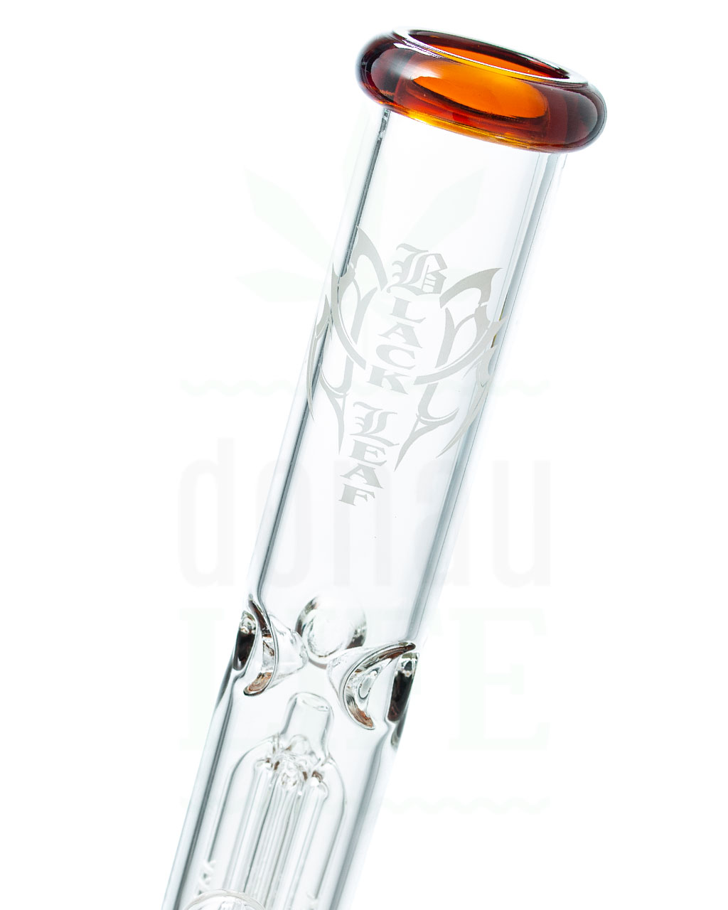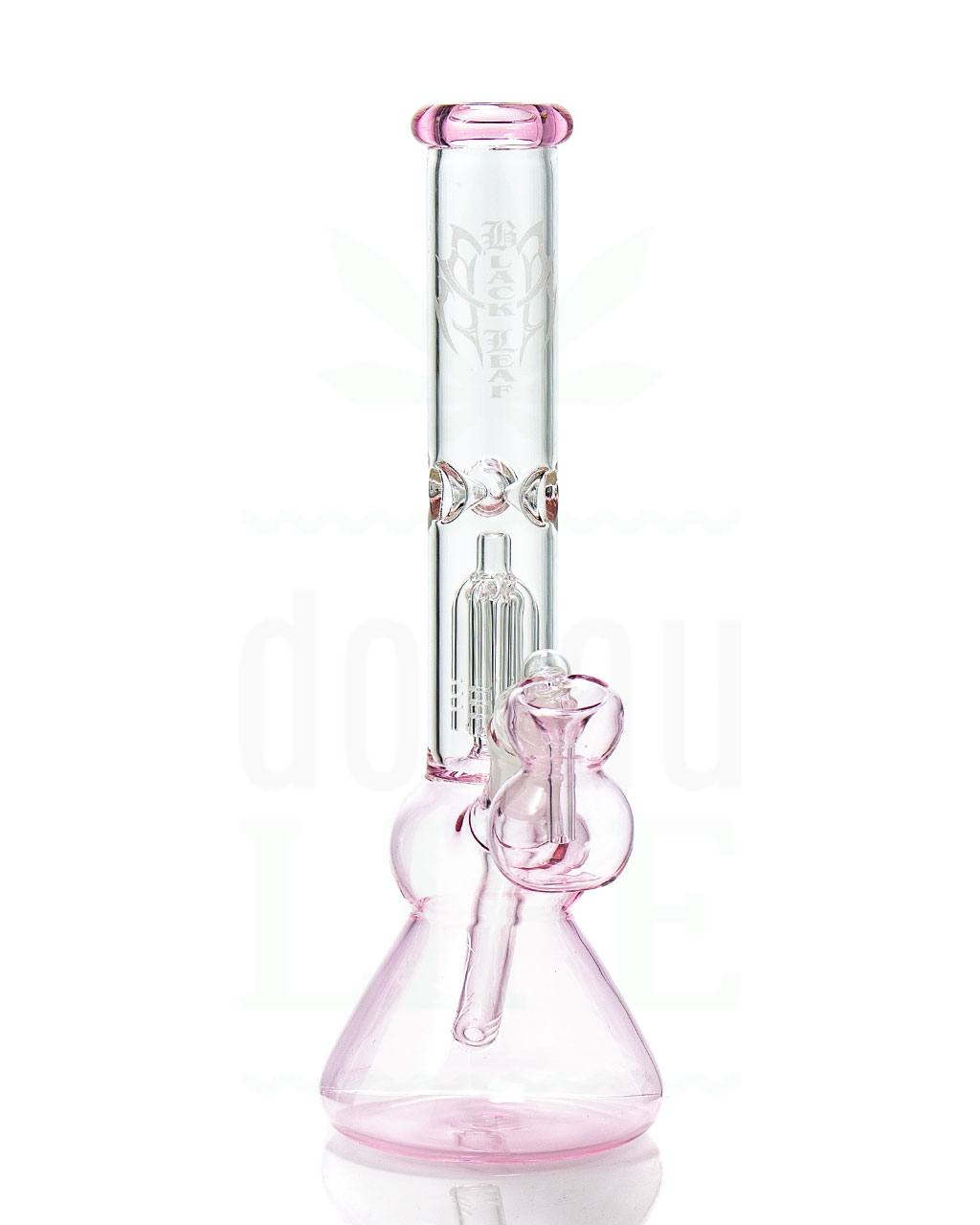 Die ‘Butterfly’ von Black Leaf ist unter Bongliebhabern mittlerweile der Klassiker schlechthin. Diese kompakte Glasbong besitzt ein ganz besonderes Gimmick, und zwar hat sie einen Ashcatcher der gleichzeitig auch als Köpfchen dient. Dieser filtert schon im ersten Schritt den gröbsten Teil der Schadstoffe aus dem Rauch. Danach bewegt sich der Rauch durch das Chillum in den Bauch, wo er durch den Diffusor weiter verwirbelt wird. Wenn er dann in der Bong aufsteigt muss er den Baumperkolator passieren der nicht nur Schadstoffe abfängt sondern auch als Splashguard dient.