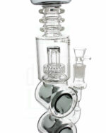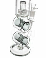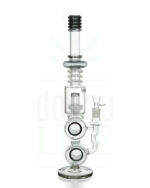 Das Design dieser ungewöhnlichen Glasbong hat nicht nur dekorativen Charakter, sondern macht die Wasserpfeife griffig. Insbesondere oberhalb der Perkolatorkammer lässt sich der Rachenkracher gut packen.