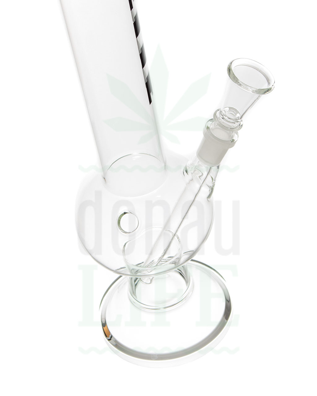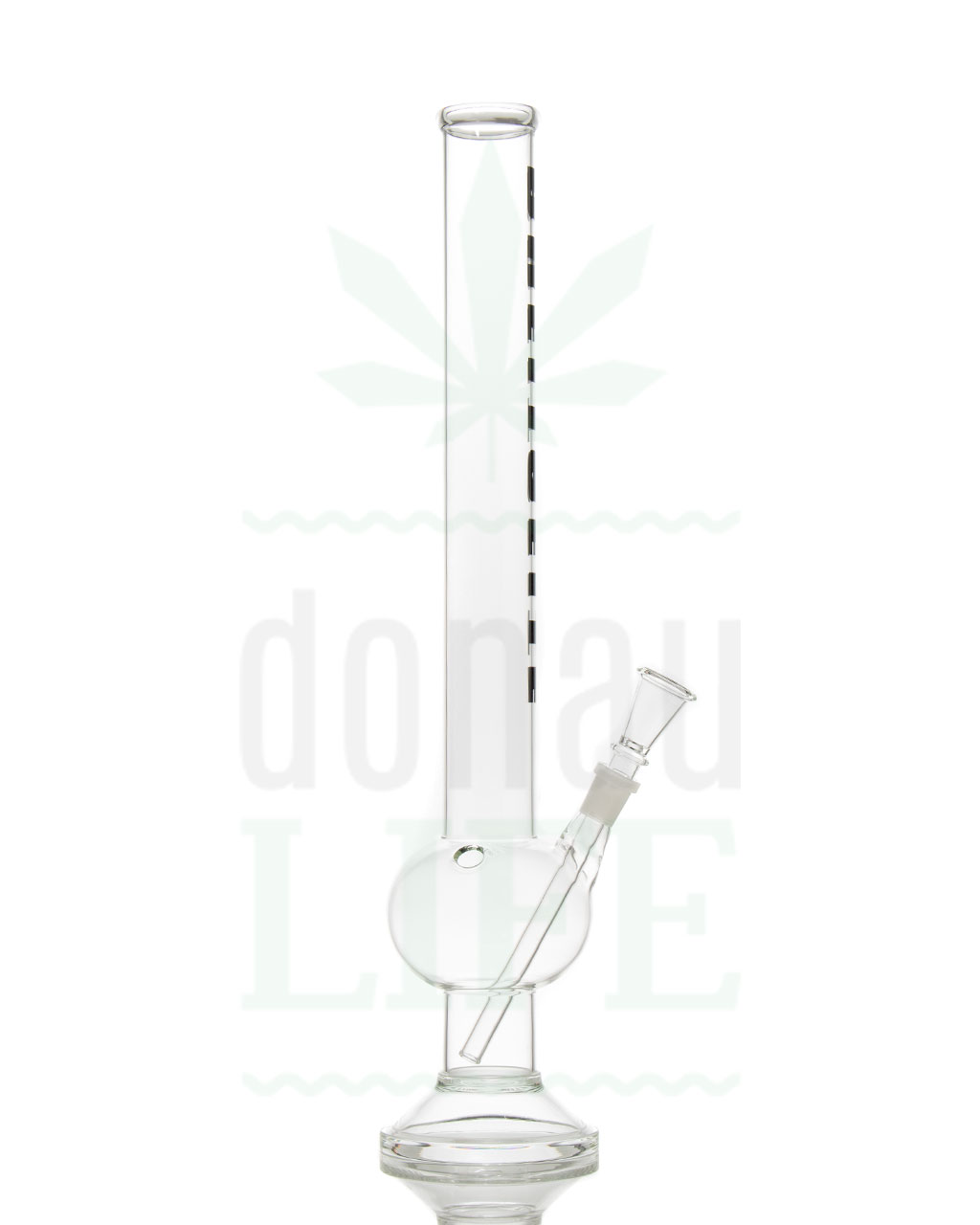 Das beliebte ‘Breitseite’ Bong ist in gewohnter Qualität mit schwerem, stabilem Standfuß, Kickloch und Shillum. Der schwarze Schriftzug befindet sich auf dem Rauchrohr.