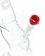 Die Giant ‘Kogler’ ist ein außergewöhnliches Stück Bongkunst, welche dir ein aufregendes Raucherlebnis bieten wird. Sie besteht aus einem superbreitem Basisrohr, wobei der untere Teil eingedreht ist + simplen Rundfuss für extrafesten Stand. Der Bongkopf und die Base des Chillums haben beide einen NS19 Schliff. Der Bongkopf ist ein klassisch bedampfter Boost Bongkopf in rot. Am mittleren Teil des Ansatzrohres befindet sich die Giant Aufschrift in sandgestrahlter Form. Um den ‘Kogler’ entsprechend nutzen zu können bedarf es schon eines recht ordentlichen Lungenvolumens, dies sollte definitiv beim Kauf dieser Bong bedacht werden.