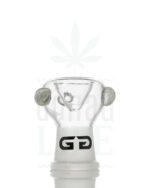 Ein Bong Kopf vom Hersteller Grace Glass in grüner oder transparenter Optik mit 3 transparenten Griffpunkten. Der Kopf hat einen weiblichen 18,8 mm Schliff.