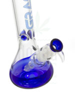 Diese Ice Beaker Bong ist dein praktischer Begleiter wenn es um exzellente Hits geht! Sie besteht aus hitzebeständigem und 7mm dickem Borosilikatglas und ist mit einem Blauen Logo am Rohr verziert was einen tollen Akzent zu den anderen blauen Akzenten der Bong darstellt. Der Bongkopf hat einen Rollstop durch welchen er niemals vom Tisch rollen wird. Das schöne Stück ist mit einem 8-Arm Percolator und einem Splash Guard ausgestattet. Letzterer verhindert das dir Wasser in den Mund spritzt wenn man zu stark und lang anziehst.