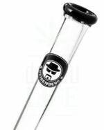 Dieses schöne Stück Glasware ist 50 cm hoch und hat eine Glasdicke von 7 Millimeter. Das Chillum ist ca. 12 cm lang und hat einen 18,8er Schliff. Mundstück, Eiskerben, Fuß und Logo setzten sich in schwarz von dem klaren Glas dieser Bong ab – und das sieht extrem geil aus! Zusätzlich kannst du die Bong mit Eiswürfel befüllen um den Rauch ab zu kühlen.