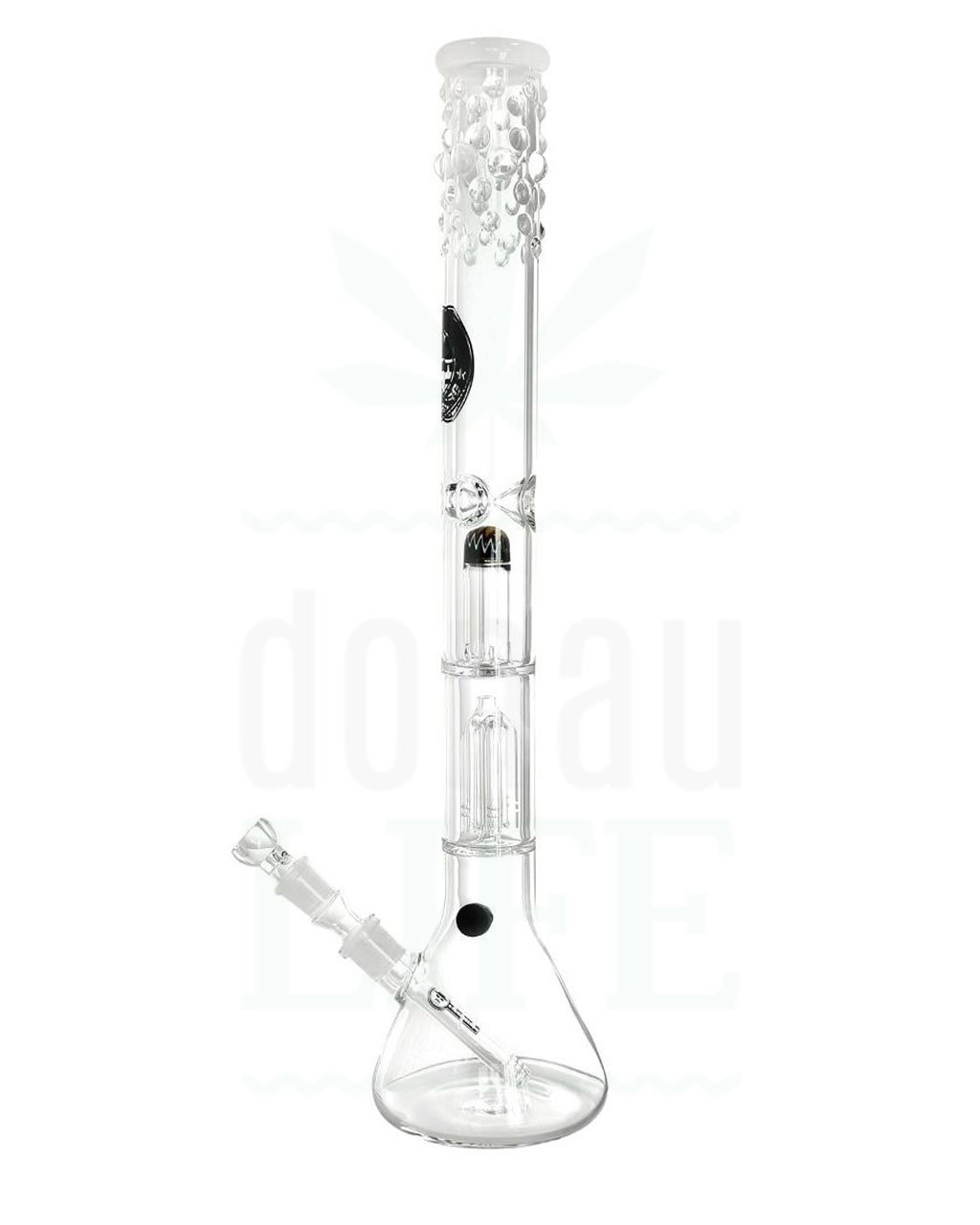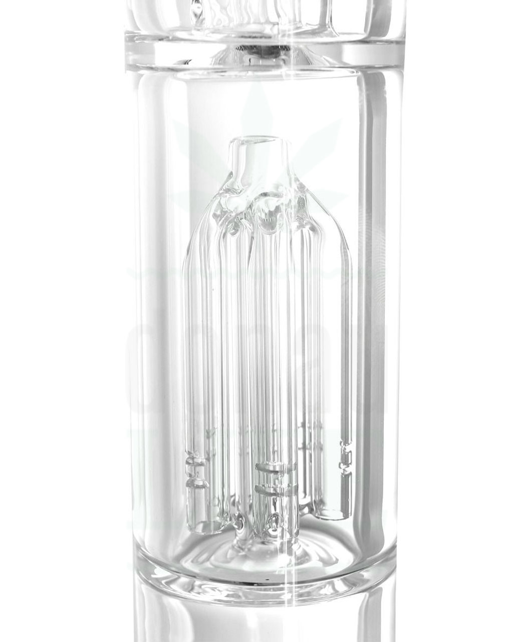 5-Arm Perkolator – Bei dem großen Perkolator zwischen Mundstück und Beaker-Boden handelt es sich um einen großen Two Perc mit 5 einzelnen Diffusor-Armen. Jedes einzelne Ärmchen wird von 2 Schlitzen durchzogen, durch die der Rauch gezogen und intensiv verwirbelt wird, um ihn zu kühlen und möglichst vielen Schadstoffen zu befreien, bevor er eingeatmet werden kann.