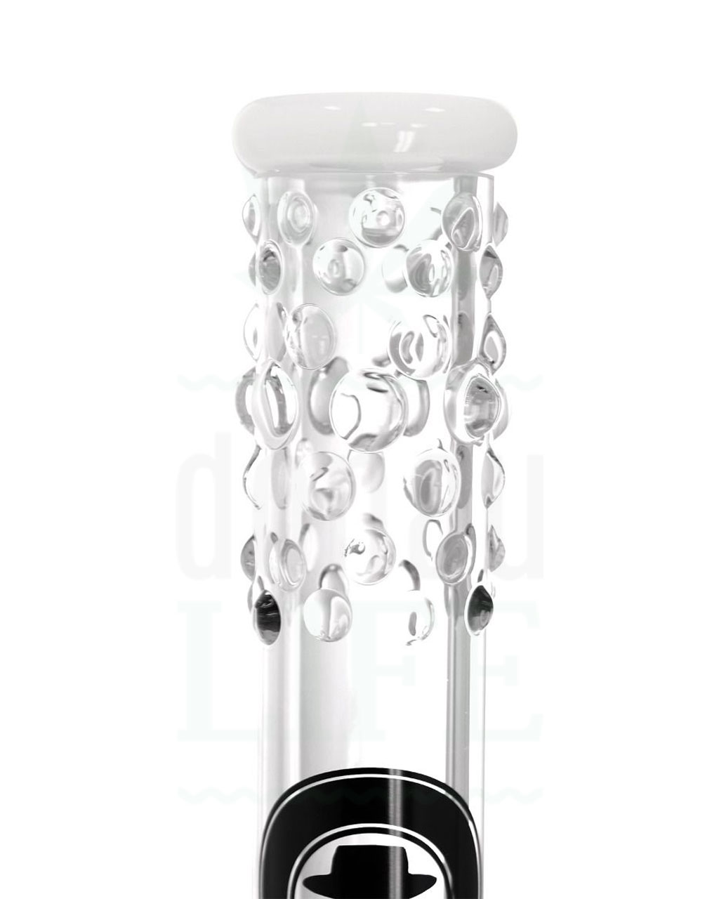 Kickloch mit Verschlusstopfen – Dieses bietet den Vorteil, dass das Köpfchen zum Hitten nicht angehoben werden muss und vereinfacht das reinigen und trocknen der Bong nach der Benutzung. Um die Finger beim Rauchen sauber zu behalten und die Reinigung der Bong noch einfacher zu gestalten, ist bei der Lieferung ein Kicklochstutzen aus Silikon enthalten.