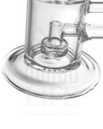 Durch ihre Größe und die vielen Wasser- und Rauchverwirbeler eignet sich die Wasserpfeife aus Borosilikatglas auch sehr gut zum Öl rauchen. Dazu braucht man nur das Kräuterköpfchen mit großem Durchlass und praktischen Griff durch einen auf den Schliff passenden Ölnagel, Banger oder eine Ölpfanne auszutauschen.