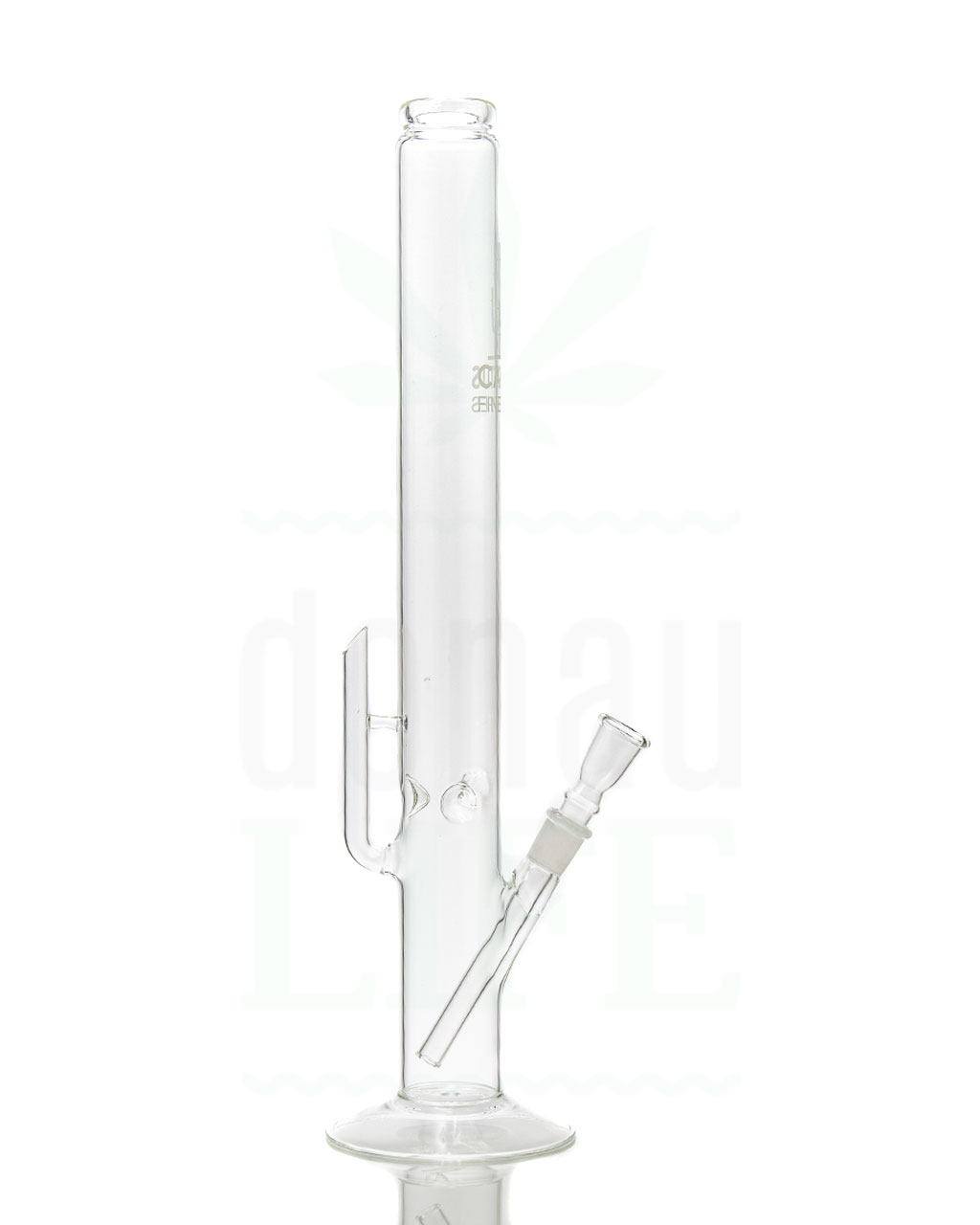 Die ‘jamacaru’ ist ein sehr interessantes Stück Glaskunst, mit der du garantiert in luftige Höhen kommst! Sie besteht aus einem hohlen Basisrohr von 49cm Höhe und 50mm Durchmesser. Du kannst deine wertvollen Kräuter in den 18,8mm großen Kopf geben der mit einem Chillum verbunden ist, um den Rauch im Hals zu verteilen, auf dem das Cactus Logo zu Sehen ist. Mit den Eiskerben kannst du auch einige Eiswürfel in die Bong füllen, um den Rauch zu kühlen! Ein weiteres besonderes Merkmal ist, dass das Kickloch mit einem zusätzlichen Rohr höher Platziert wurde.