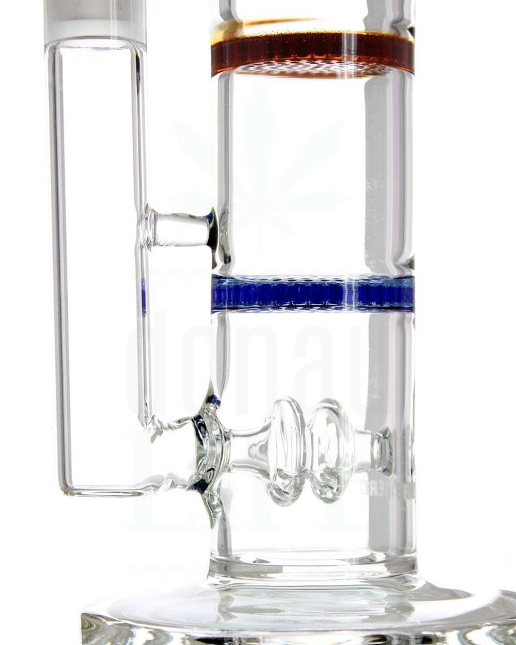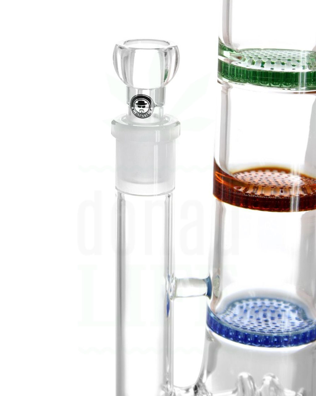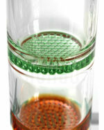 Per offrirti un’esperienza di fumata ottimale, abbiamo progettato per te un bong spesso 5 mm e alto 56 cm, pieno di percolatori. Il fumo passa prima attraverso un doppio disco, che poi passa a una taglio integrato fisso. Qui il fumo viene preparato non con uno, né con due, ma con ben 3(!) inserti a nido d’ape e subisce il suo primo processo di pulizia. I tre dischi diffusori a nido d’ape sovrapposti, che seguono direttamente il doppio disco, creano un’infinità di bolle assurde, garantendo una diffusione ottimale e un sapore piacevole.