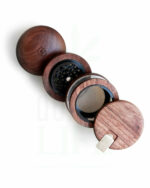 Dieser 4-teilige Grinder von Marley Natural verbindet Schönheit und Nützlichkeit durch die Verwendung von nachhaltigem schwarzen Walnussholz und hochwertigen eloxierten Aluminiumkomponenten. Das magnetische Oberteil und seine 27 speziell angefertigten Zähne können kontinuierlich gedreht werden, um Volumen und Textur zu erzeugen, oder hin und her gedreht werden, um einen feineren Schliff zu erzielen. Durch ein klares, bruchsicheres Polycarbonat-Fenster sieht man den Fortschritt und der Pollen sammelt sich unten in einem abnehmbaren magnetischen Behälter mit einem Edelstahlschaber. Und er ist groß genug, um eine THC-ausgehungerte Party zu ernähren.