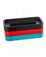 Die Classic-Version misst 18 x 11 cm, während die Slim-Version nur 18 x 8,5 cm misst. Der Hauptunterschied zwischen den beiden Versionen ist, dass bei der Classic-Version das Blättchen vollständig in die mittige Rinne hineinpasst, während das Blättchen bei der Slim-Version ein Paar Millimeter über die Ränder der Rinne hinausragt, wodurch es leichter ist das Blättchen nach dem Befüllen aus dem Tray herauszunehmen.
