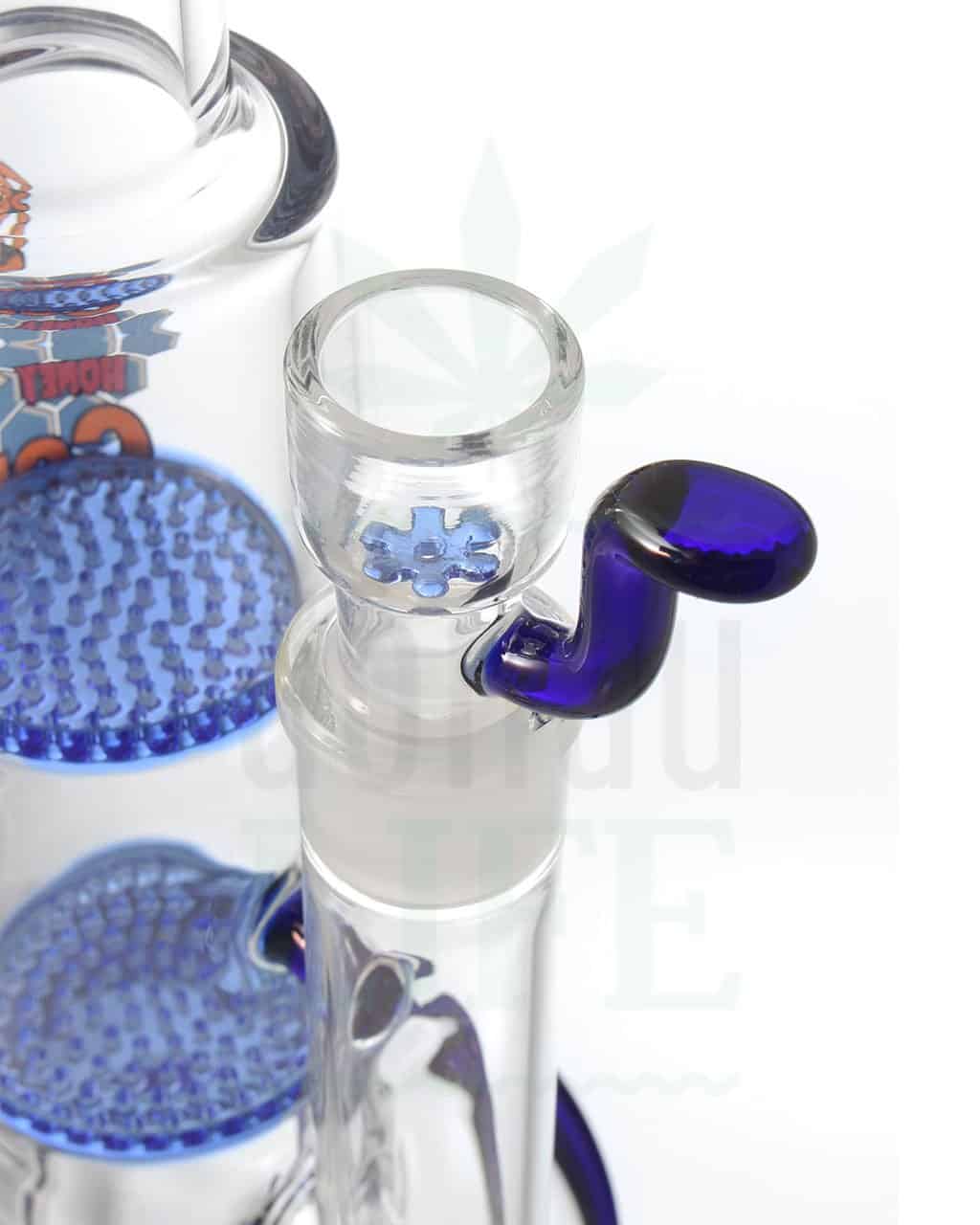 Die ‘Double Honeycomb’ filtriert den mit ihren beiden integrierten Diffusorscheiben besser bekannt als Honeycomb. Dadurch sorgt sie für eine sensationelle Filtrierung bzw. Verwirbelung des Rauches. Im Lieferumfang ist ein Köpfchen mit NS14 enthalten. Dieses Köpchen hat ein im intensiven blau gehaltenes, integriertes Glassieb und einen Griff der gleichzeitig als Rollstop dient, damit dieser auch bestimmt keinen tödlichen Kontakt mit dem harten Fußboden macht.