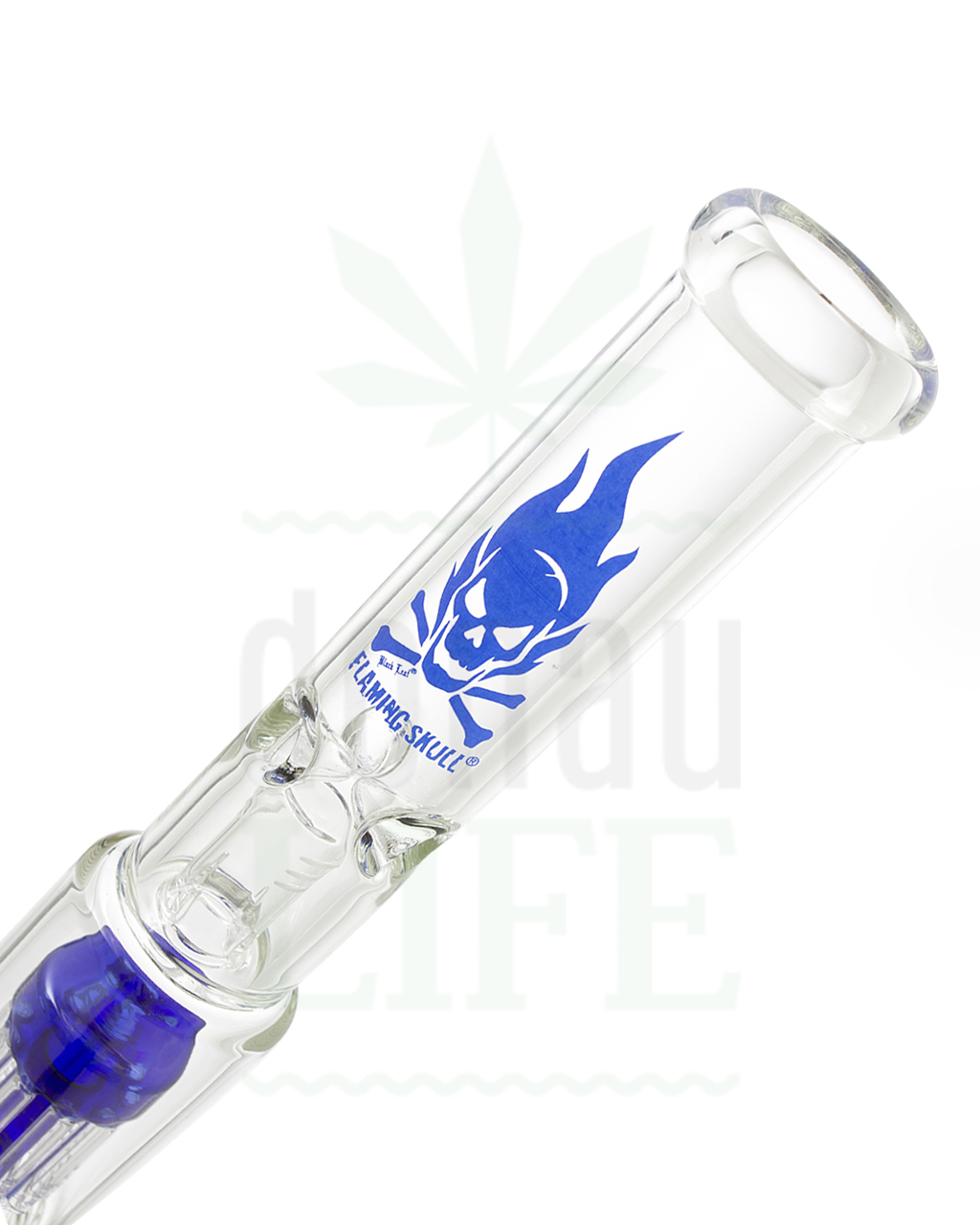 Diese Glasbong überzeugt mit dem vollen Programm: Gleich zwei 10-Arm-Baum-Perkolatoren nehmen dem Rauch die Schärfe. Deren Glasarme sind einzeln mit dem Innenrohr verschweisst, was die Perkolatoren extrem stabil macht. Stabilität ist bei 7 mm Wandstärke überhaupt eine besondere Stärke dieser Eisbong – neben ihrer Genussqualität, die durch das Zusammenspiel sämtlicher Features entsteht.