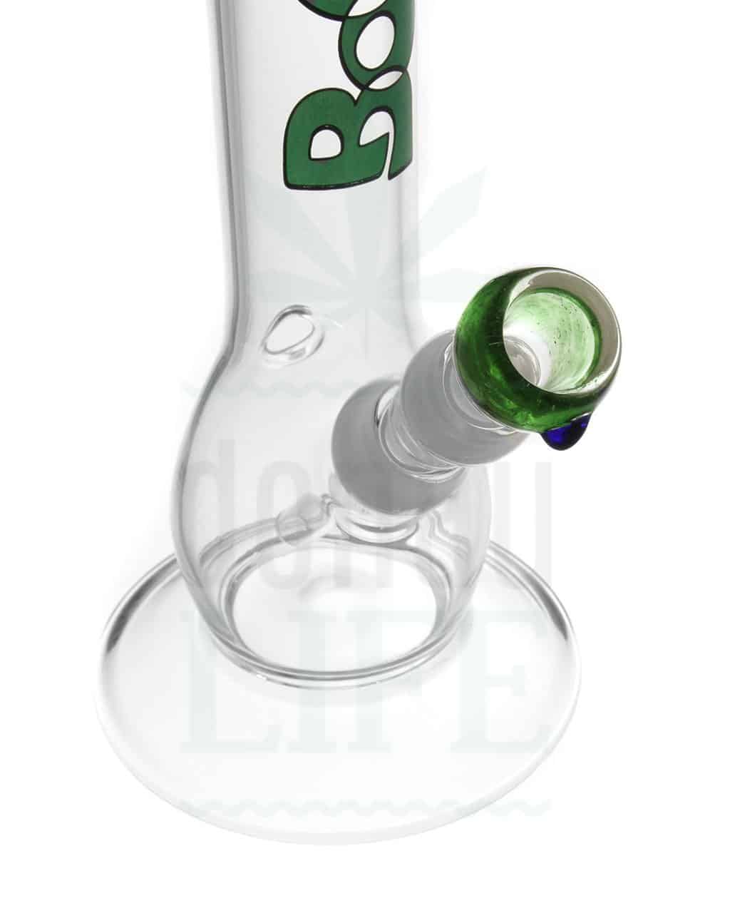 Diese kleine Bouncer Bong ist ein praktischer Begleiter, welche dir exzellente Hits garantiert! Sie besteht aus hitzebeständigem und robusten Borosilikatglas und die Vorderseite ziert das grüne Boost Pro Logo, was einen tollen Akzent zu dem klaren Design der Bong darstellt. Der Bongkopf hat einen Rollstop durch welchen er niemals vom Tisch rollen wird.