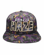 Snapback in lila gold braun schwarz Camo Muster. Front Logo 3D-Stickerei, innerhalb der Haze Buchstaben sehen Sie einen Rauch-Muster. Eine weitere großartige Ergänzung zu Ihrem 420 Hut Sammlung mit einem speziellen HIDDEN POCKET im Inneren des Hutes.