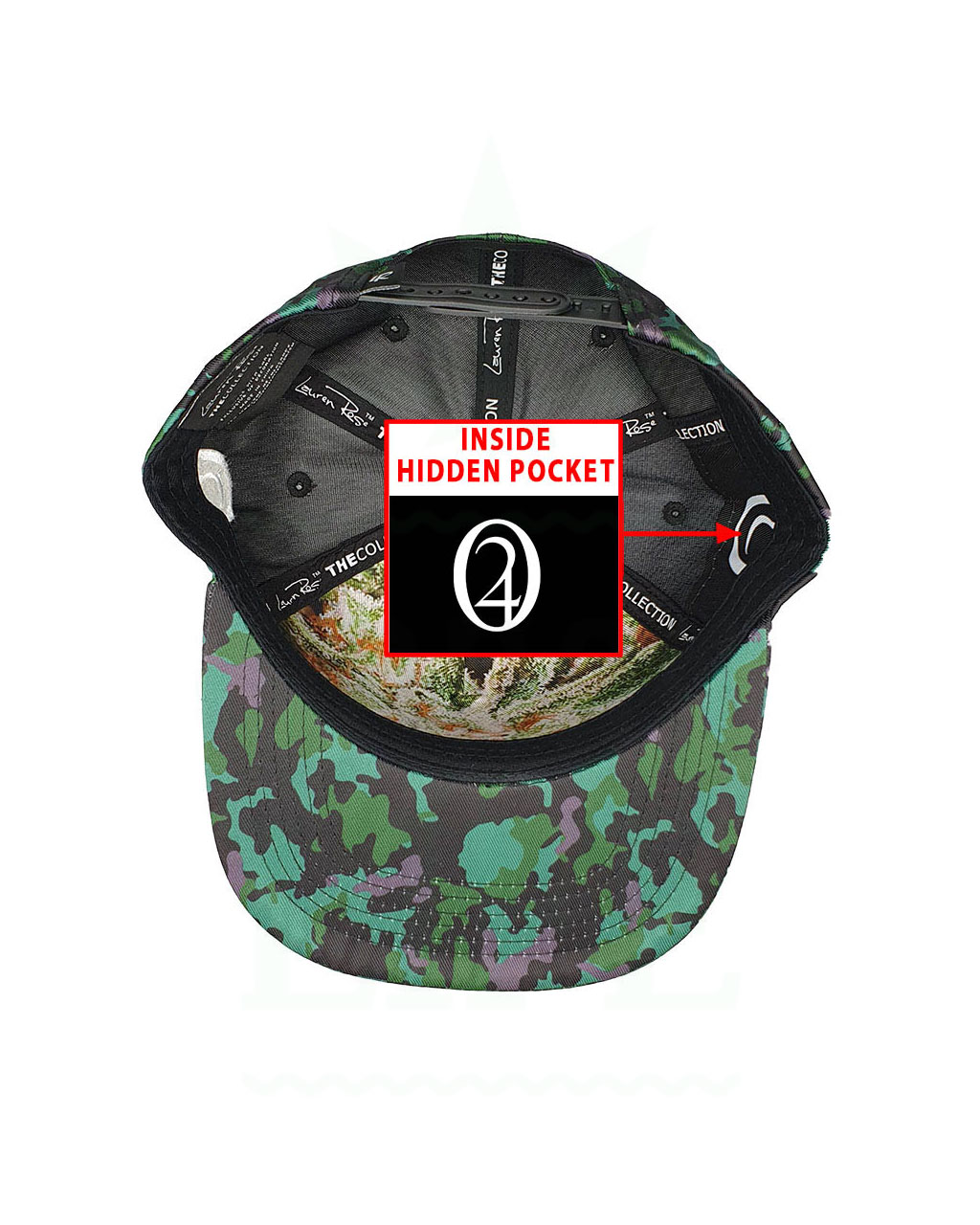 Das Logo auf der Vorderseite zeigt in 3D-Stickerei den Umriss des Staates Cali und den Schatten des berühmten California Grizzly. Dieser Hut hat ein besonderes Merkmal! eine HIDDEN-Tasche zum Verstauen von 1 Gramm Sour Diesel. Eine weitere großartige Ergänzung für deine 420er Hut-Kollektion. An der Seite des Hutes befinden sich die berühmten ovalen 420-Logos.