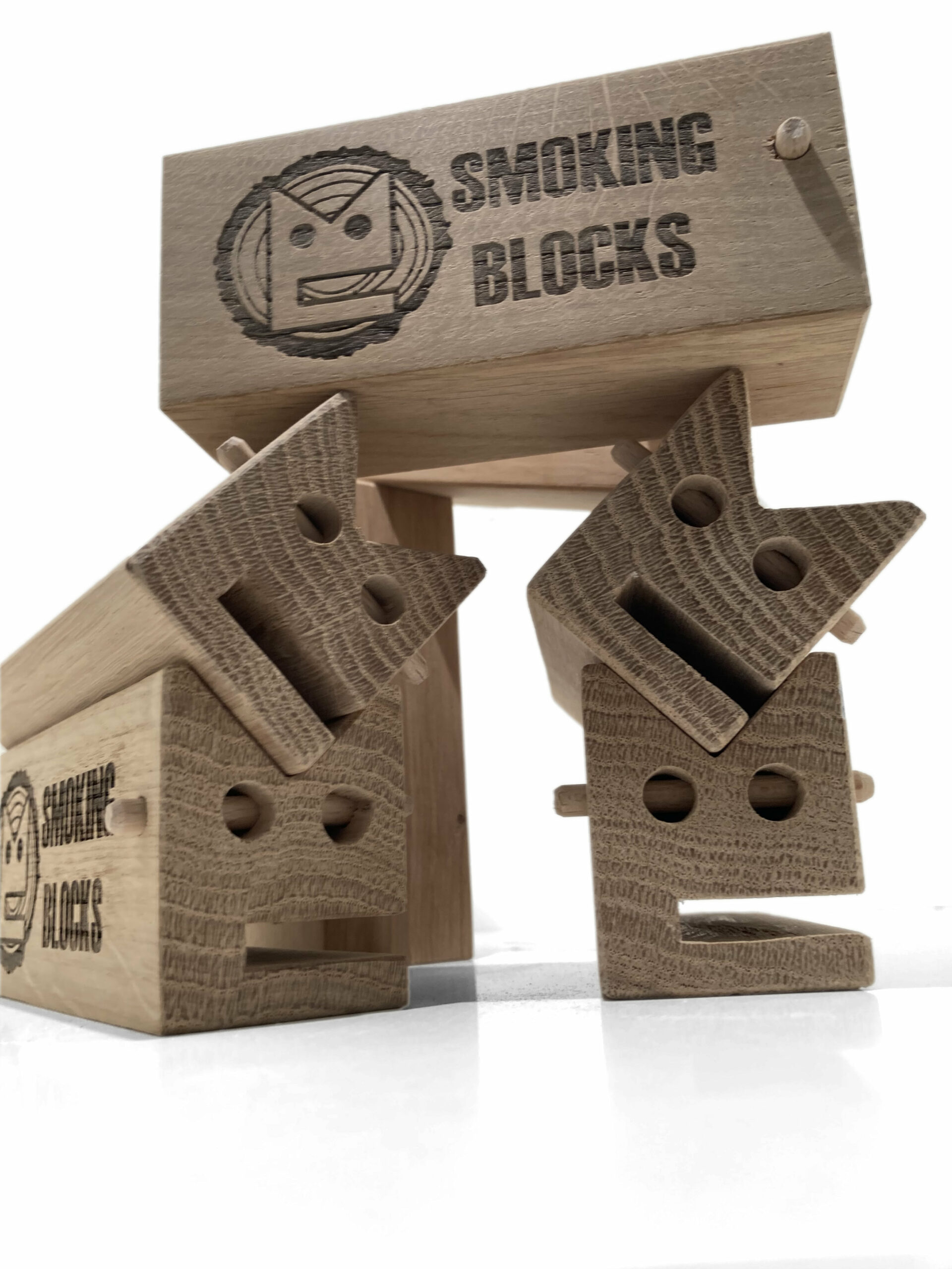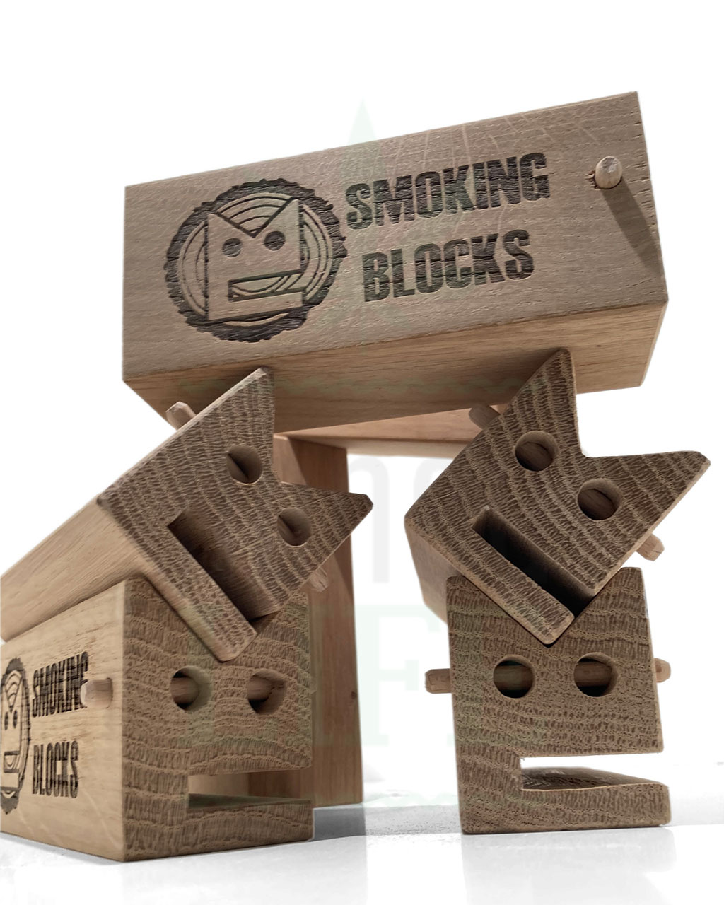 Durch sein kompaktes Design bietet der SmokingBlock eine handliche, unkomplizierte Bauunterlage mit verschiedenen Funktionen. Er eignet sich nicht nur als praktisches Tool für unterwegs, sondern auch für den Gebrauch zuhause. Mit ausreichend Stauraum für Pape-Packungen sowie mehrere Aktivkohle-Filter / pre-rolled Tips passt der SmokingBlock immer noch in jede Bauch- oder Jackentasche. Zusätzlich kommt jeder Block mit mehreren Stopfern aus Holz, die ebenfalls leicht verstaut werden können. Der Stopfer ist nicht nur ein Muss für den Feinschliff in jedem Bauvorgang, sondern macht jeden in Verbindung mit der Pape-Kerbe zum Bau-Experten.