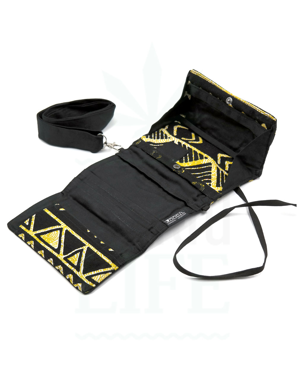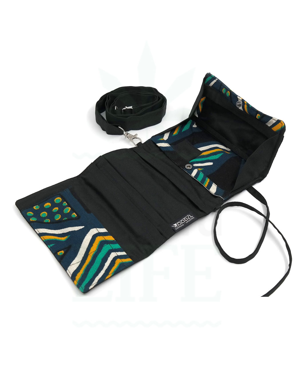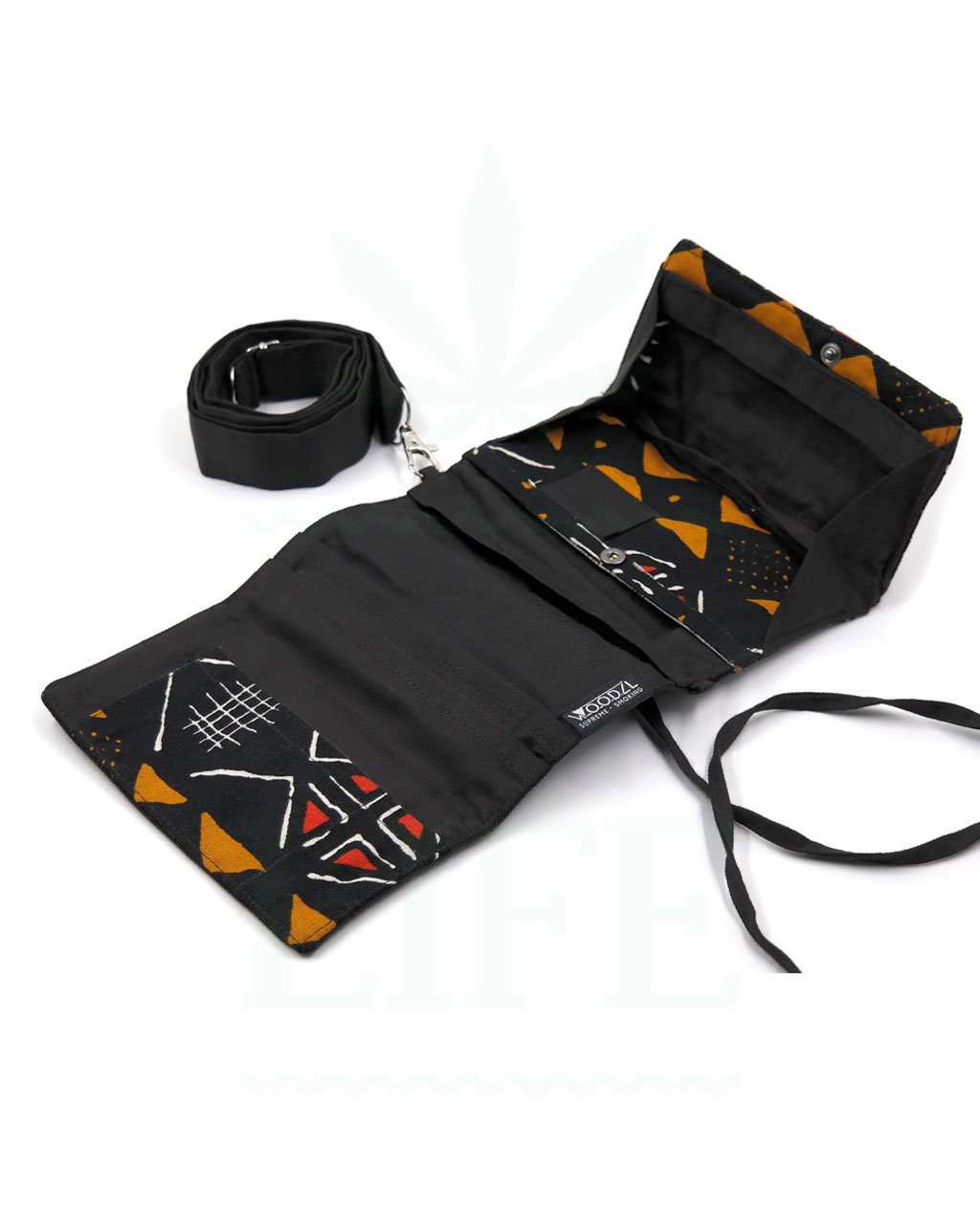 Mit einer Schnur stylisch umwickelt, wird der Woodzl Rolling Bag sicher verschlossen. An kleinen unscheinbaren Laschen kannst du die Tabaktasche bei Bedarf mit dem mitgelieferten Tragegurt verbinden. Über der Schulter getragen, hast du alles Nötige auf dem Festival oder draußen in der Natur dabei.