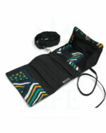 Die Tabakbeutel gibt es in schlichter, einfarbiger Ausführung aber auch in Kombination mit lebendigen, afrikanischen Designs.